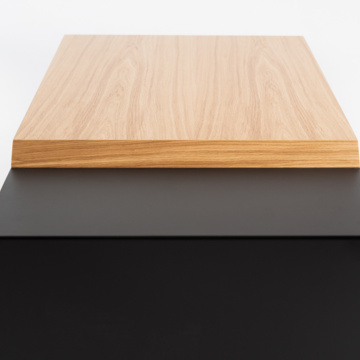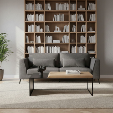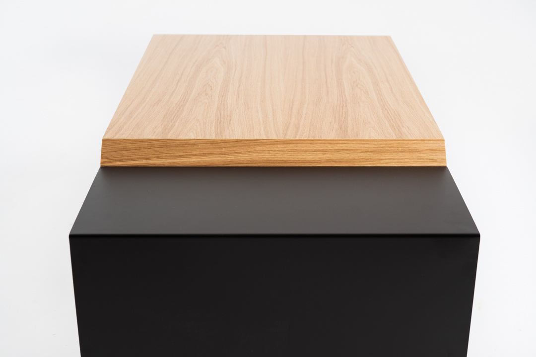 The Axiom coffee table is the essence of contemporary design – bold, solid and exceptionally stylish. Its base, made of black powder-coated steel, forms a stable foundation for the impressive 4 cm thick oak veneer top. The combination of raw steel and natural wood makes it the central point of any interior. The table perfectly complements the Axiom console, creating a harmonious set for lovers of modern living spaces.